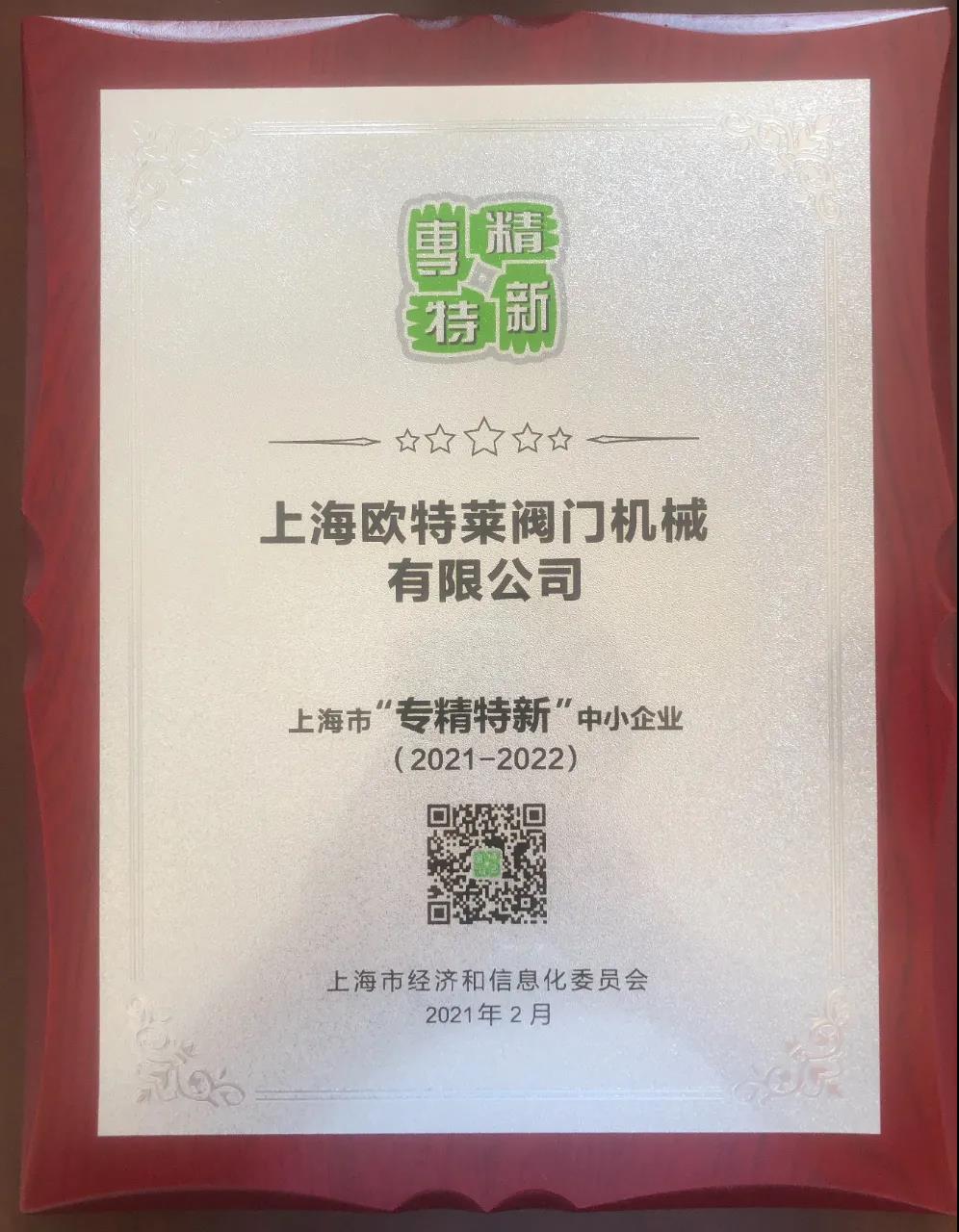 上海歐特萊閥門榮獲上海市專精特新企業(yè)及英國WRAS認(rèn)證!